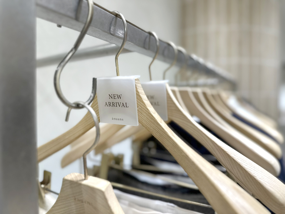商品打ち出し用のハンガーPOPタグのデザインをさせていただきました。
